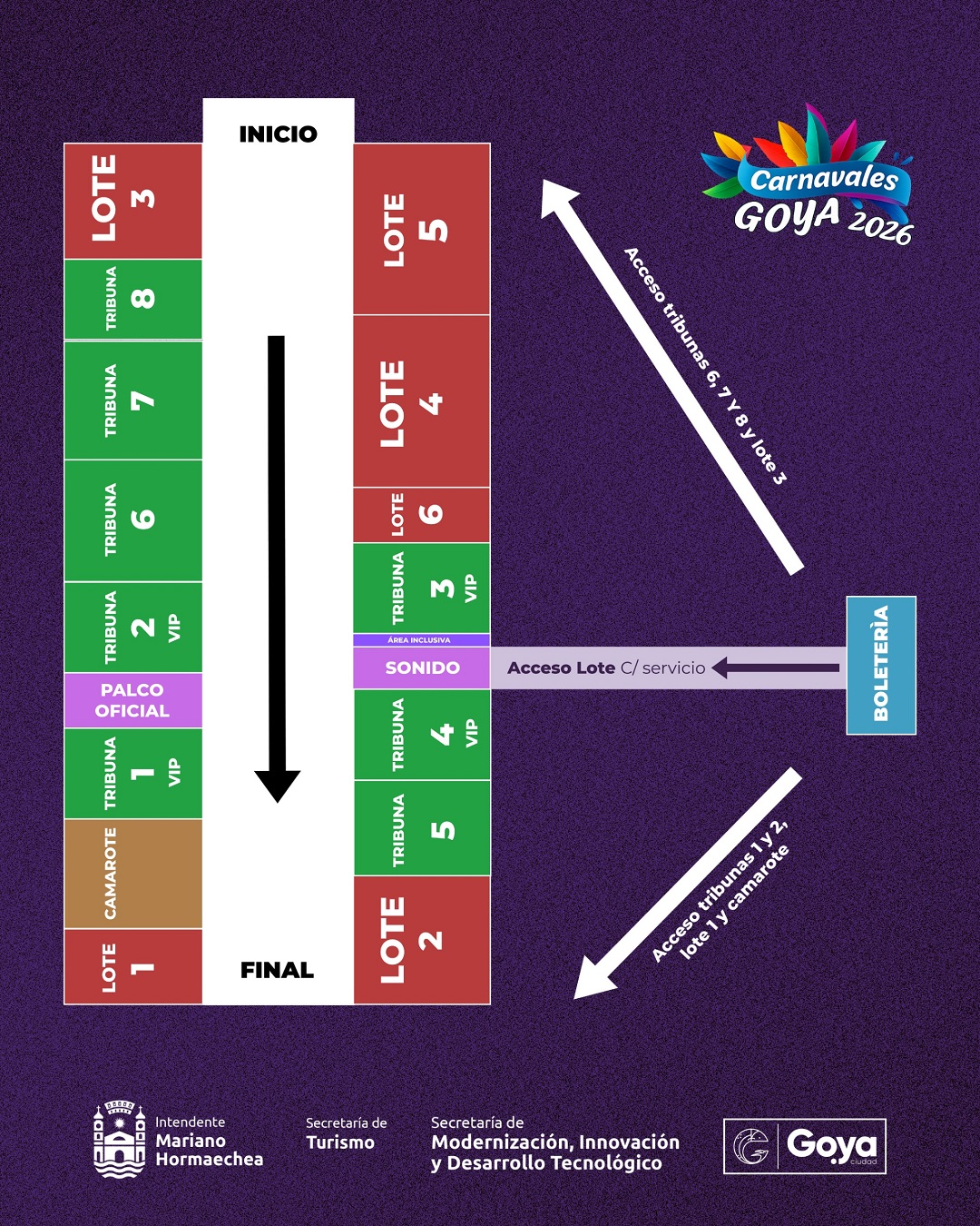El predio cuenta con tribunas de acceso gratis, tribunas sector preferencial VIP, servicios sanitarios, puestos gastronómicos, personal de seguridad y asistencia médica durante toda la jornada, garantizando una experiencia cómoda y segura para el público.